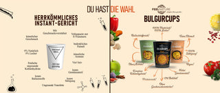 FeelNature Bulgurcups - Ready to eat in 5 Min. Ohne Palmöl, Geschmacksverstärker und Aromen. Entdecke die neue Art von Fertiggerichten!