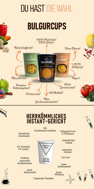 Ob zum Frühstück oder Mittagessen. Oder auch als Snack. BULGURCUPS sind für jede Mahlzeiten geeignet!